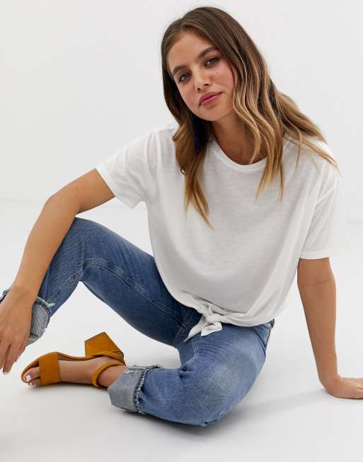 New Look Weisses T Shirt Mit Knoten Vorn Asos
