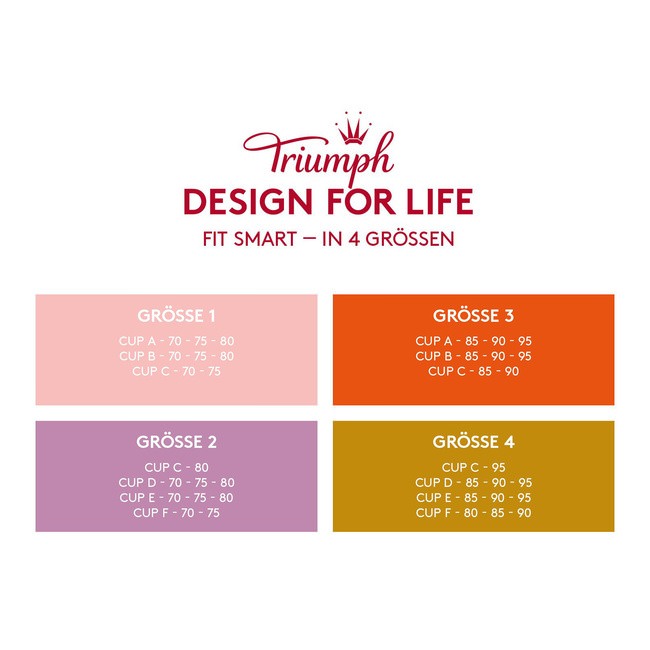 Zusätzlich bietet die FIT Smart Spalte eine ideale Übersicht, welche BH Größe Sie für einen Triumph Design for Life BH wählen sollten Fit Smart Größe 1 Die Größe 1 gibt an, dass Ihre Maße eine BH Größe zwischen 70A und 70C, 75A und 75D, 80A und 80B liegen Fällt Ihre BH Größe in diesen Bereich, dann bestellen Sie Ihren neuen. Ein rundum bequemer BH für jeden Dieser Fit Smart P EX passt sich mit seiner 4D Stretchspitze jeder Körbchengröße flexibel an Das erleichtert die Suche nach der richtigen Größe Nur 4 Größen decken die sonst 35 traditionellen Größen ab Der angenehme Tragekomfort macht den BH zu einem. Neues Angebot Triumph Pure Sensation WDP BH mit Bügel Größe 75B creme Multifunktion Shaping EUR 8,99 0 Gebote EUR 2,95 Versand Endet am 29 Nov, 1841 MEZ 9T 23Std Neues Angebot Triumph BH 80B b rosa mit Bügel Satin Nylon Slip 38 40 42 Set Spitze transparent EUR 30,00 0 Gebote EUR 3,99 Versand Endet am Sonntag,.