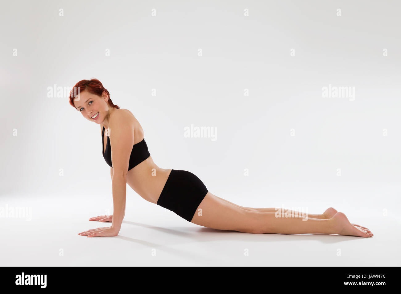 Junge Frau Bei Fitness Ubungen Oberkorper Push Ups Stock Photo Alamy