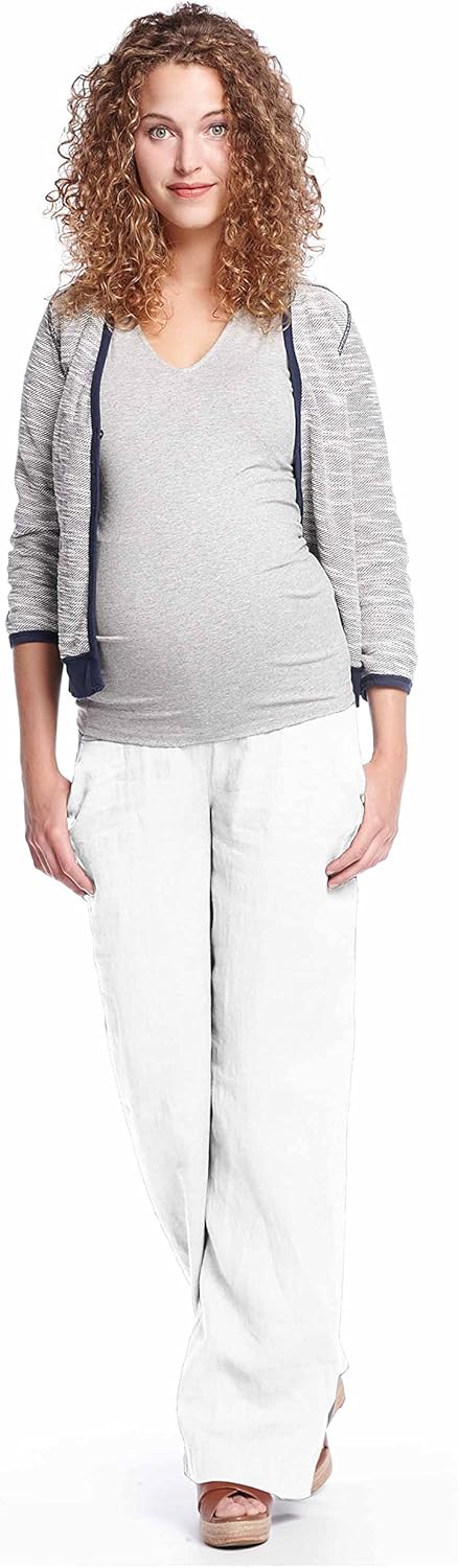 Queen Mum Damen Umstands Hose Schwangerschafts Hose Leinen Hose Freizeithose Sommerhose Schwangerschaft Locker Leger Weit Leinen Weiss Gr 34 Amazon De Bekleidung