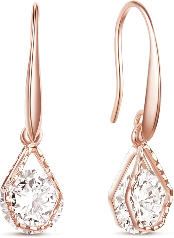 Gold Tone Micro Pave Clear Crystal Round Dangle Earrings For Women Earrings