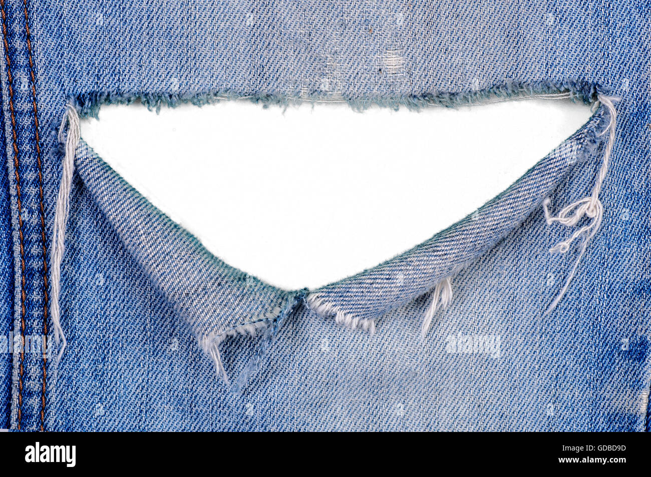Das Loch In Zerrissenen Jeans Mit Einem Weissen Hintergrund Stockfotografie Alamy