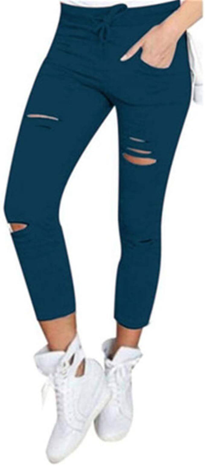 Xozdwe Frauen Dunne Jeans Beilaufige Weisse Locher Bleistift Zerrissene Jeans Schwarz Zerrissene Hosen Light Blue 4xl Amazon De Bekleidung