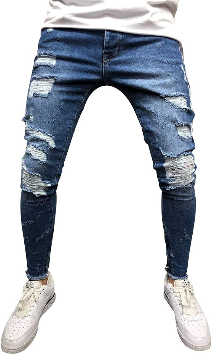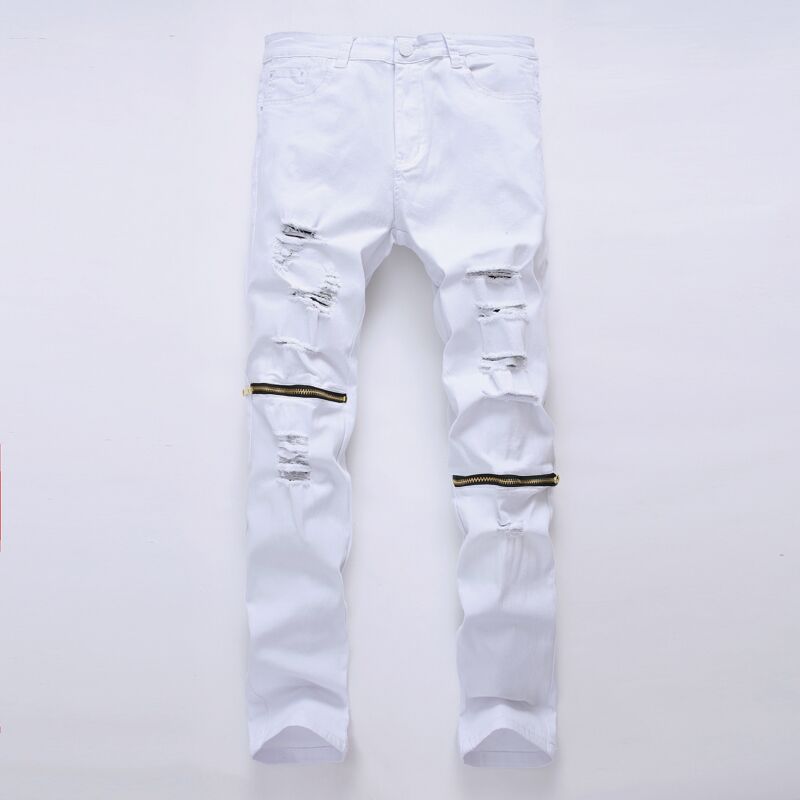 Grosshandel Mode Herren Hip Hop Zerrissene Jeans Destroyed Hole Skinny Biker Jeans Weisse Streifnaht Reissverschluss Verziert Schwarz Hellblaue Denimhose Von Haomi 26 94 Auf De Dhgate Com Dhgate