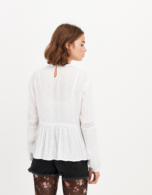 Weisse Bluse Mit Raffung Plisse Und Stickereien Aktuelle Trends Gunstig Kaufen Shein Deutschland