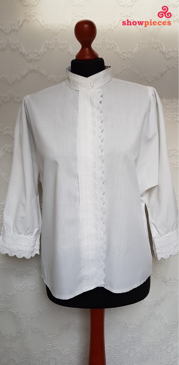Vintage Weisse Bluse Mit Stehkragen Spitzenborte Grosse 36 Etsy