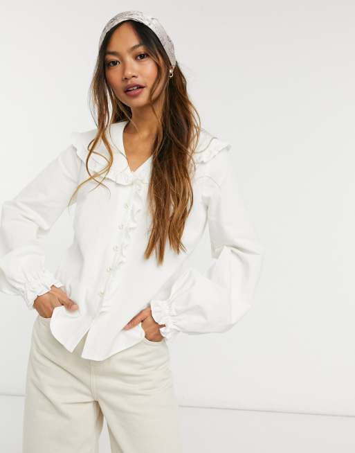 Vero Moda Weisse Bluse Mit Ubergrossem Prairie Kragen Asos