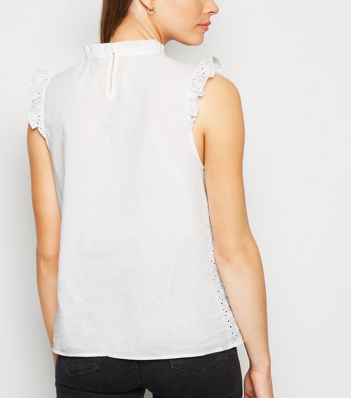 Weisse Bluse Mit Stickerei Ruschen Und Stehkragen New Look