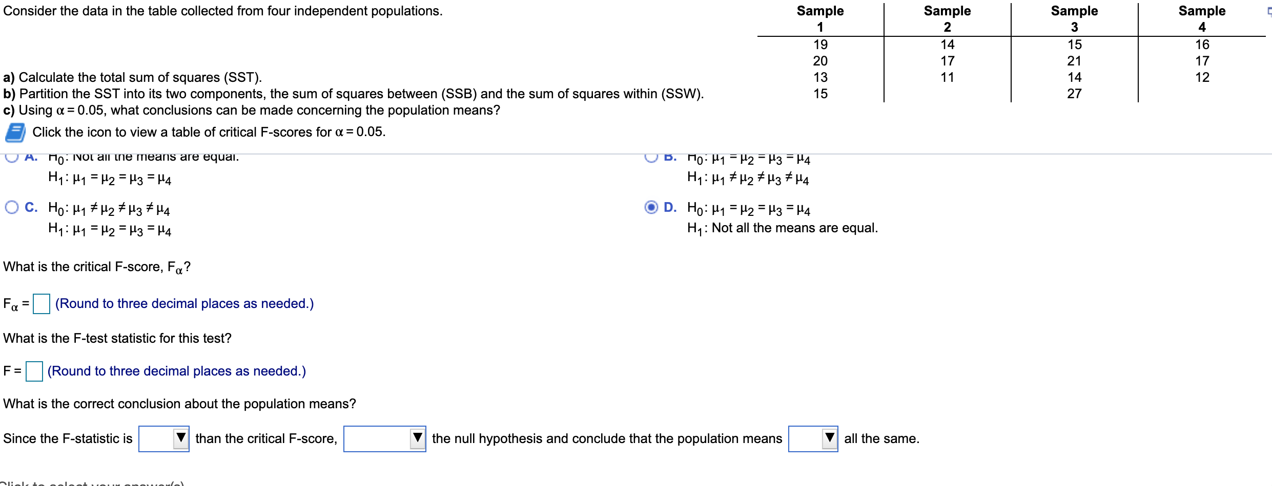 Solved Consider The Data In The Table Collected From Four Chegg Com