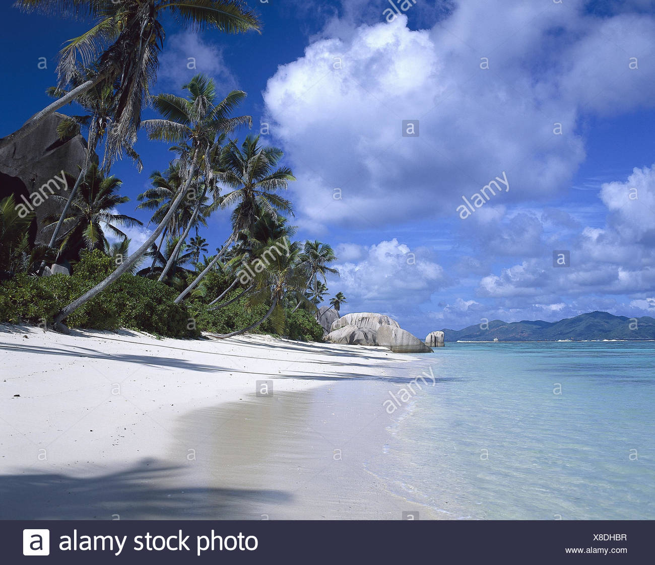 Die Seychellen Meer Palm Beach Indischer Ozean Insel Trauminsel Strand Palmen Wasser Flach Klar Turkis Urlaub Traumurlaub Traumstrand Menschenleer Einsamkeit Stille Ruhe Idylle Stockfotografie Alamy
