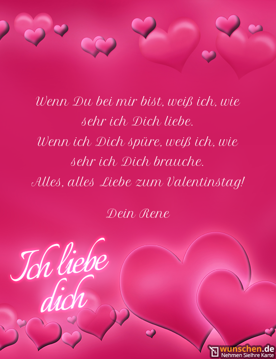 Diesen ganz besonderen möchte ich nutzen, um Dir zu sagen, wie sehr ich Dich liebe Seit dem ersten , an dem ich Dich kennen und lieben lernen durfte, ist für mich nun jeder ein Valentinstag Keinen , keine Stunde und keine Sekunde möchte ich missen, die ich mit Dir zusammen verbringen durfte. Je länger ich Dich kenne, desto mehr empfinde ich für Dich Nach so vielen Jahren sehe ich immer noch, wie wunderbar Du bist Noch nicht eine Eigenschaft habe ich an Dir entdeckt, die ich nicht lieben könnte. Ich liebe dich auch ohne Geld!.