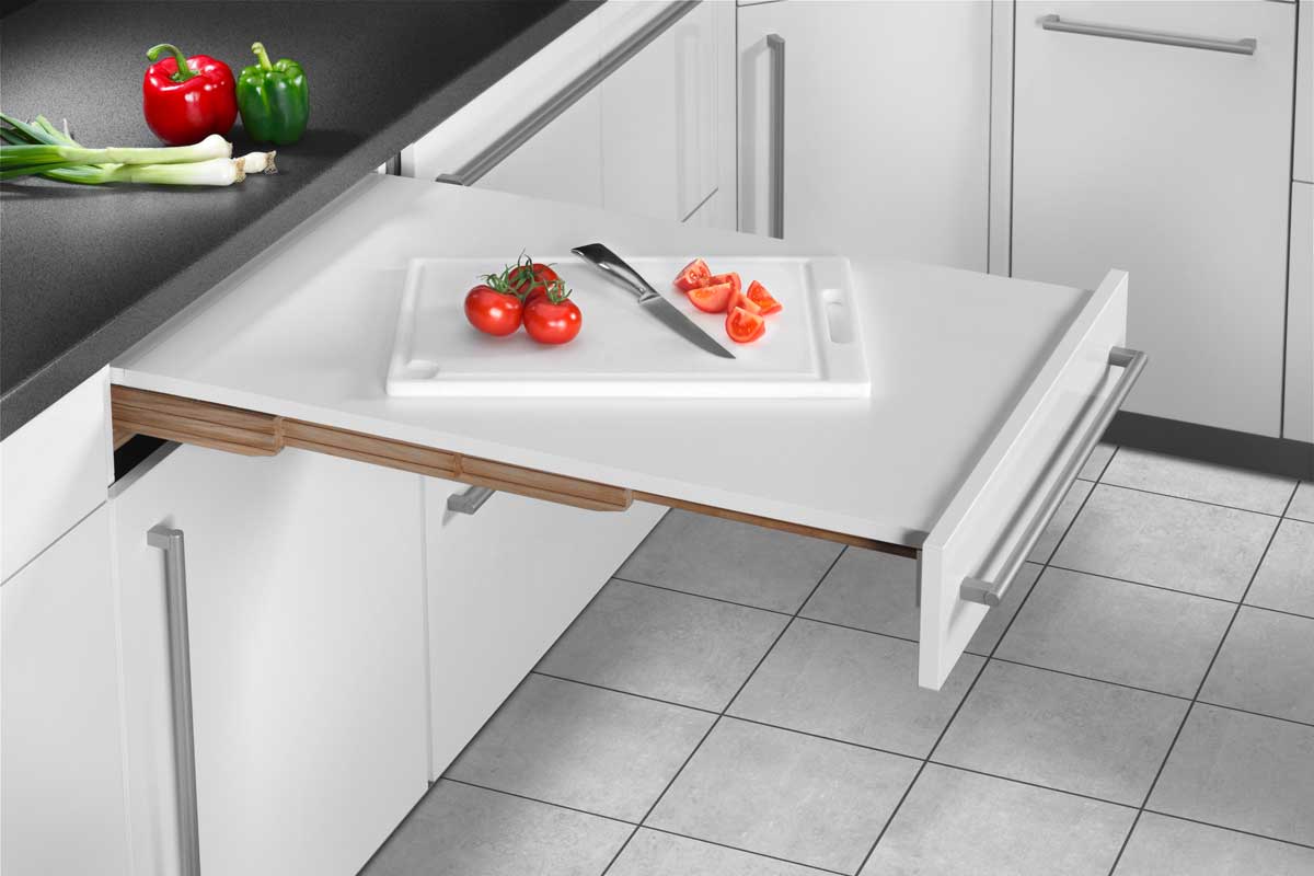 Roll Ausziehtisch Schafft Augenblicklich Zusatzliche Arbeitsflache In Der Kuche Ausziehtisch Arbeitsflache Kuche Klapptisch Kuche