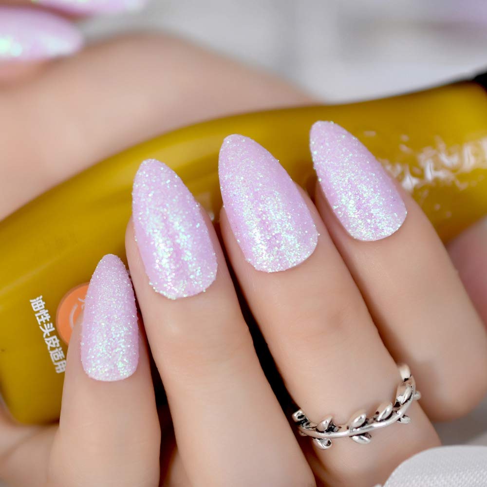 Holo Jully Light Purple Almond Stiletto Fake False Nails Pointed Green Light Nail Art Glitter Decoration Pre Design Wear Tips Matte Gray Beauty Amazon Com