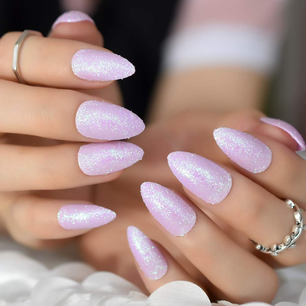 Amazon Com Holo Jully Light Purple Almond Stiletto Fake False Nails Pointed Green Light Nail Art Glitter Decoration Pre Design Wear Tips Matte Gray Beauty