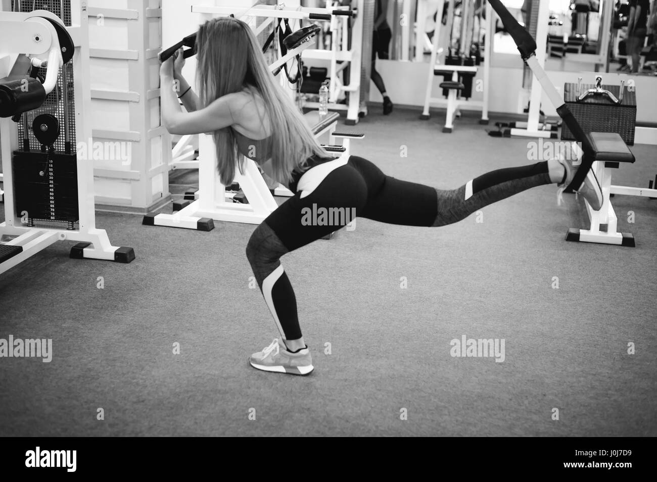 Schone Sportliche Frau Ubung Mit Trx System Junge Frau Mit Suspension Trainer Im Fitness Studio Trainieren Stockfotografie Alamy