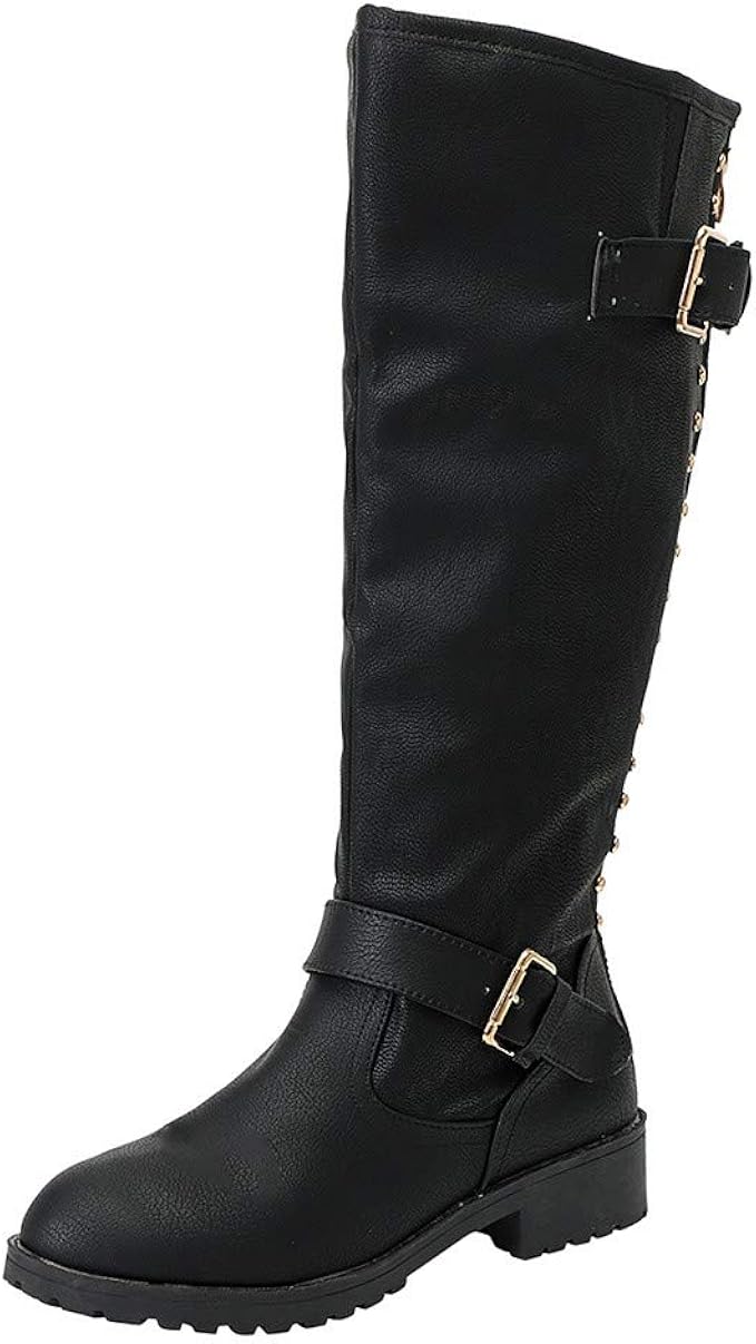 Amazon Com Industrial And Construction Shoes Women Boots Winter Tall Riding Leather Flat Shoes Rivet Roman Knee High Cowboy Martin Long Boots Ankle Fancy Across Black After Hour Black 6 5 Clothing