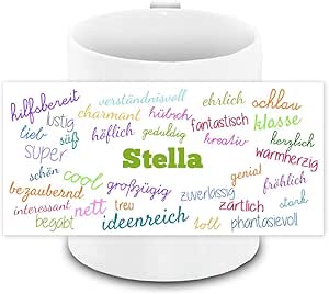 Amazon De Tasse Mit Namen Stella Und Positiven Eigenschaften In Schreibschrift Weiss Freundschafts Tasse Namens Tasse