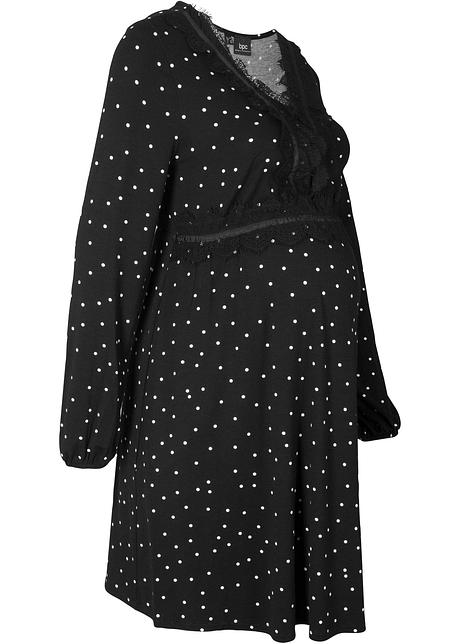 Gepunktetes Viskose Umstandskleid Mit Spitze Schwarz Wollweiss