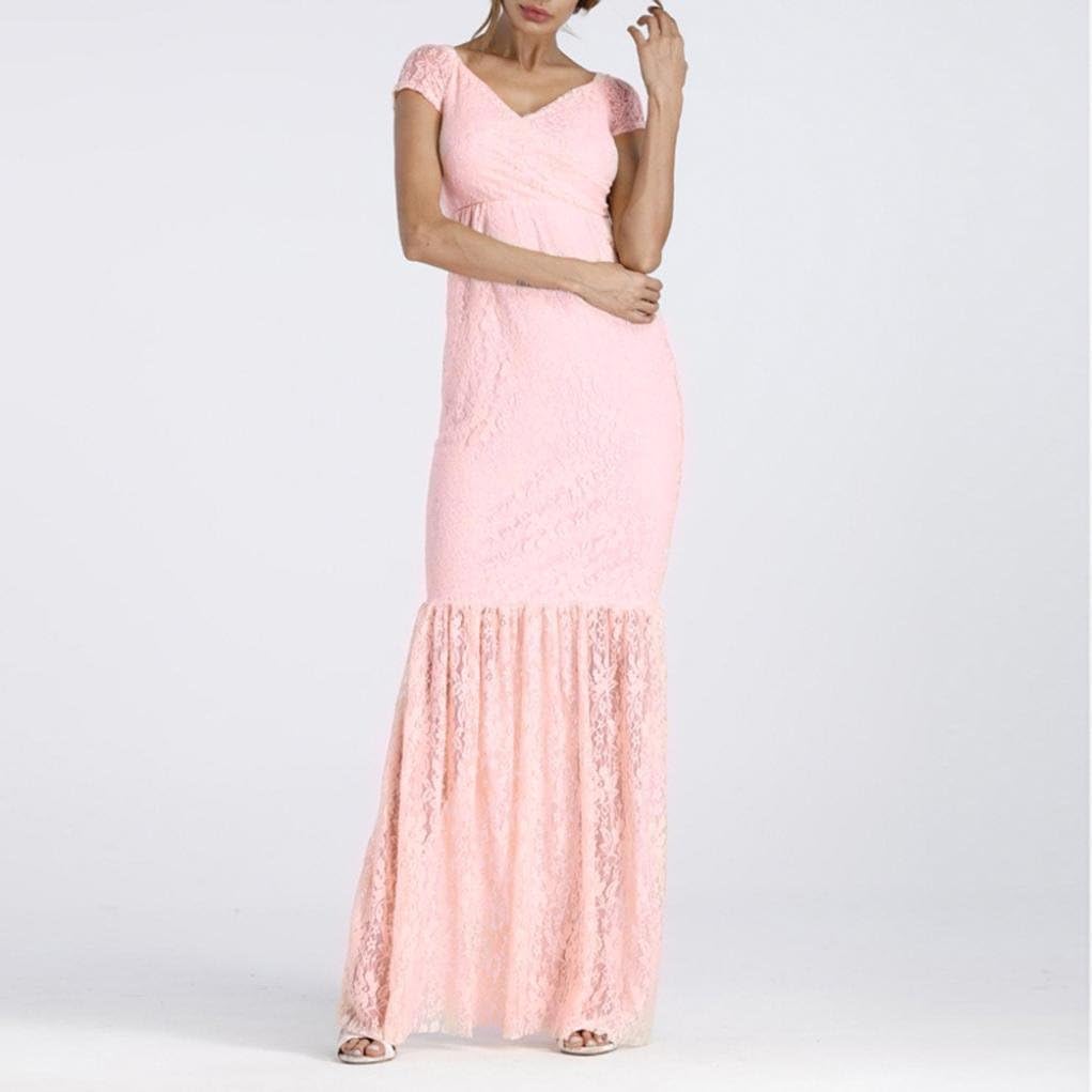 Bazhahei Damen Kleider Damen Umstandskleid Mutterschaft Mode Frauen Schwangere Frauen Wimpern Spitze Kurze Armel Kleid Schwangere Frauen Foto Shooting Kleid Unterrocke Kleider Damen