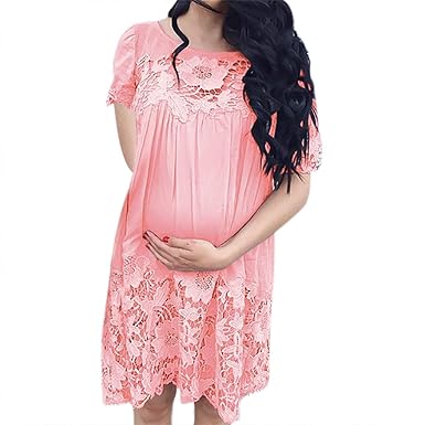 Bazhahei Damen Kleider Damen Umstandskleid Mutterschaft Mode Frauen Schwangere Frauen Wimpern Spitze Kurze Armel Kleid Schwangere Frauen Foto Shooting Kleid Umstandskleidung Kleider