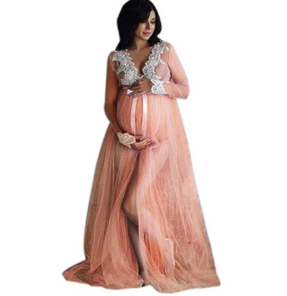 Weiss Blumen Spitze Langarm Transparente Maxikleid Umstandskleid Fur Schwangere Fotoshooting Grosse Grosse Umstandskleider Frauen Mutterschaft
