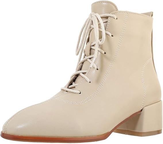 Sucreven Damen Blockabsatz Stiefeletten Schnuren Kleid Stiefeletten Square Toe Mitte Absatz Stiefeletten Amazon De Schuhe Handtaschen