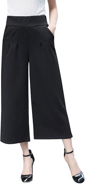 Damen Weite Hosen Elegant High Waist Palazzo Hose Culottes Hosenrock Black Xl Amazon De Bekleidung