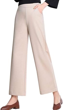 Aivtalk Damen Weite Bein Hose Frauen Einfarbig Palazzo Hosen Moderne Einfach Elastischer Bund 3 4 Hose Casual Wide Leg Pants Farbe Wahlbar Amazon De Bekleidung