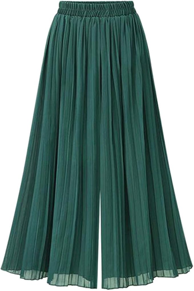 Fenical Weite Hosen Elastische Hohe Taille Chiffon Lose Plissee Palazzo Hosen Fur Frauen Grosse L Grun Amazon De Bekleidung