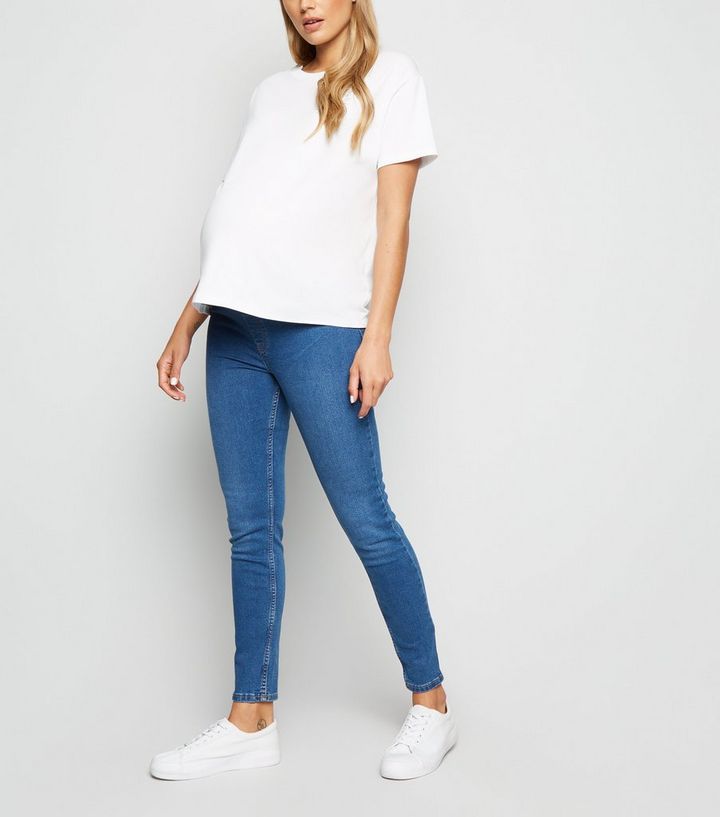 Umstandsmode Blaue Skinny Jeggings In Mittlerer Waschung Mit Unterbauchbund New Look