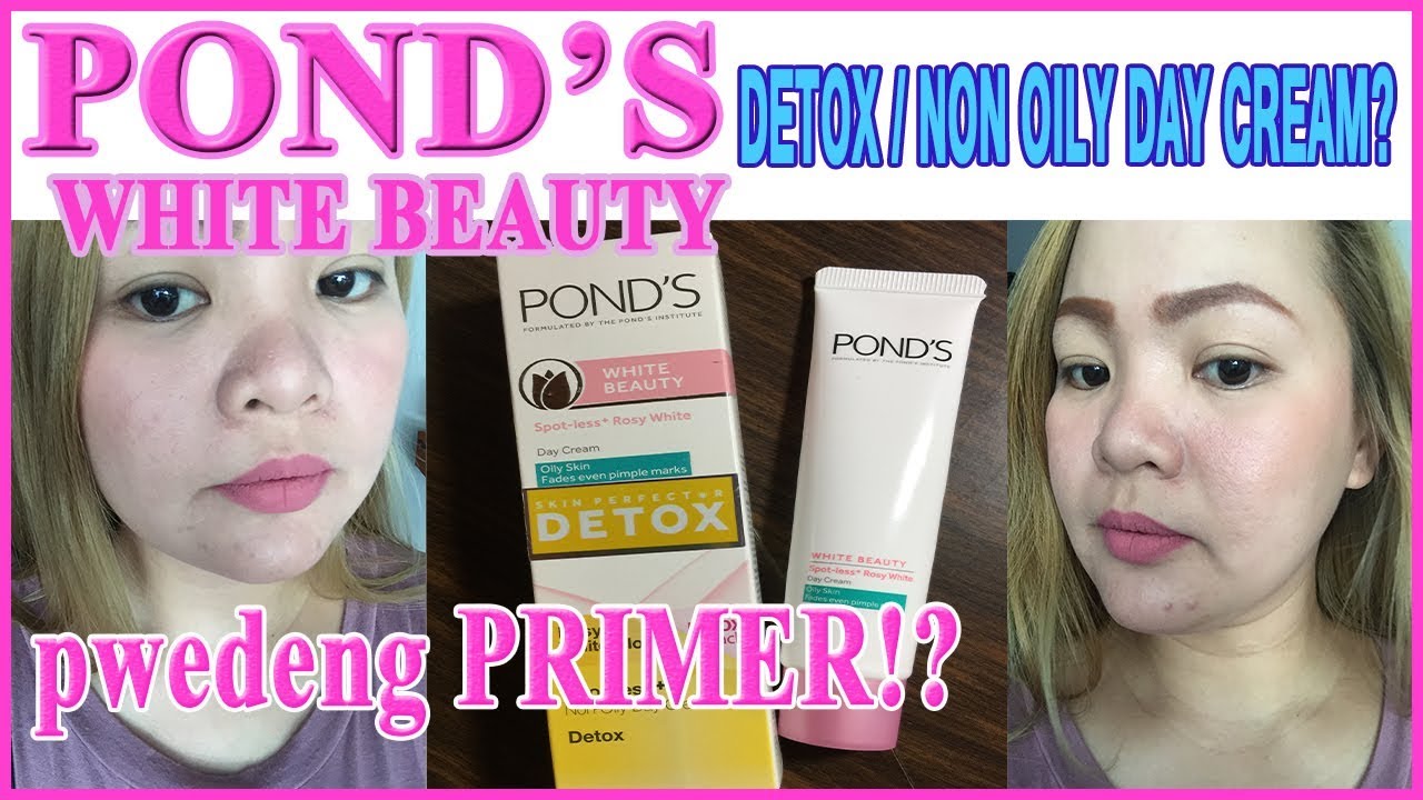 Pond's Dry Skin Cream rated 4 out of 5 on MakeupAlley See 635 member reviews and photos. And UV filters that protect your skin from the damaging rays of the sun, for a rosy white glow outside!. Pond's White Beauty Detox spotless white cream is a thick rich cream that is to be put on clean dry skin twice a day On the finger tips the cream is silkie smooth and is absorbed in to the skin very quickly with out leaving a oily greasing feeling Pond's White Beauty Detox spotless white cream does not clog pores and does not cause more blemishes.