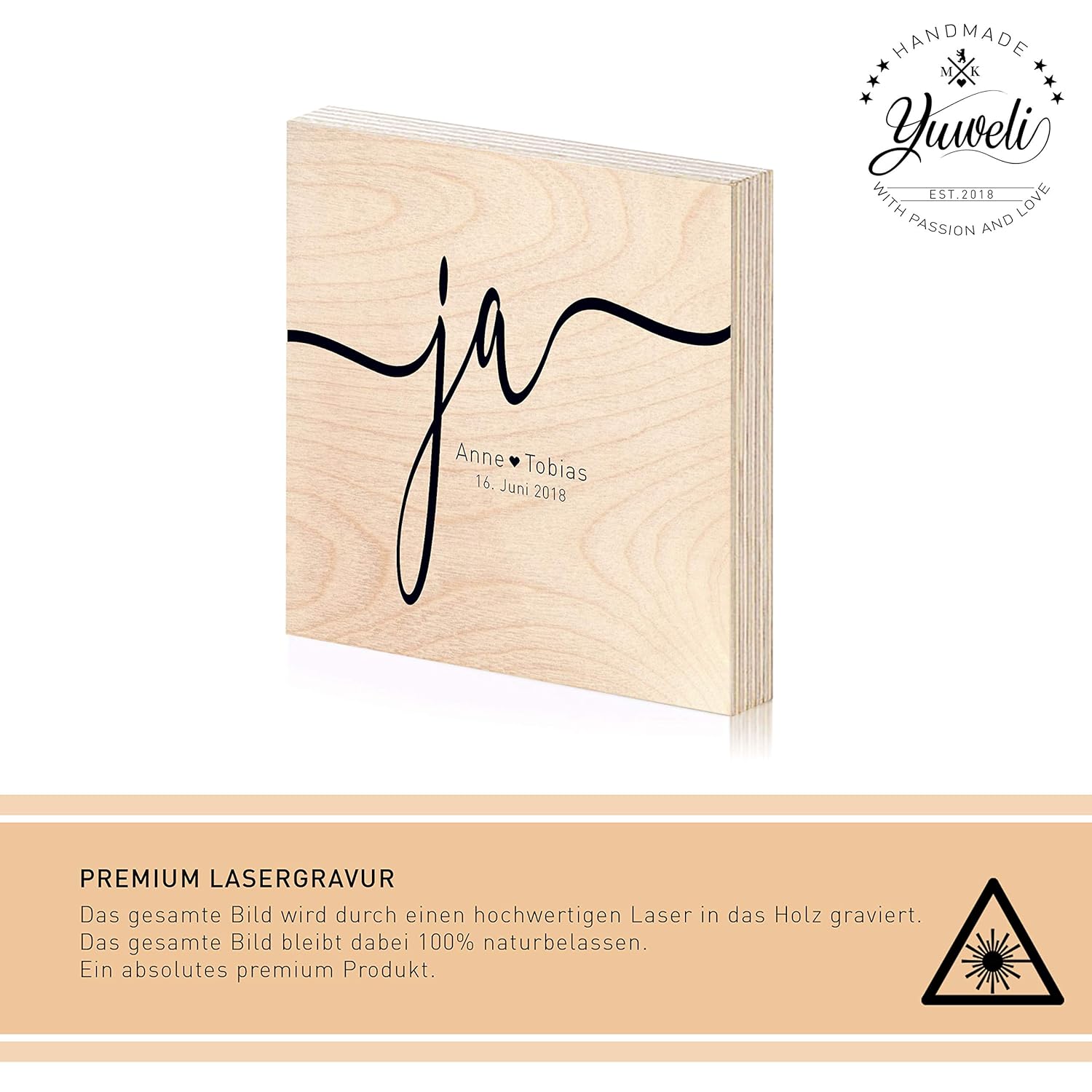 Ja Hochzeitsgeschenk Laser Gravur Holzbild 15x15 Zum Hinstellen Oder Aufhangen Mit Spruch Auf Holz Als Geschenk Oder Geschenkidee Zur Hochzeit Jahrestag Verlobung Valentinstag Wand Bild Wand Deko