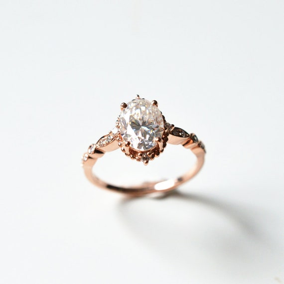 Moissanite Engagement Ring Rose Gold Vintage Engagement Ring Etsy
