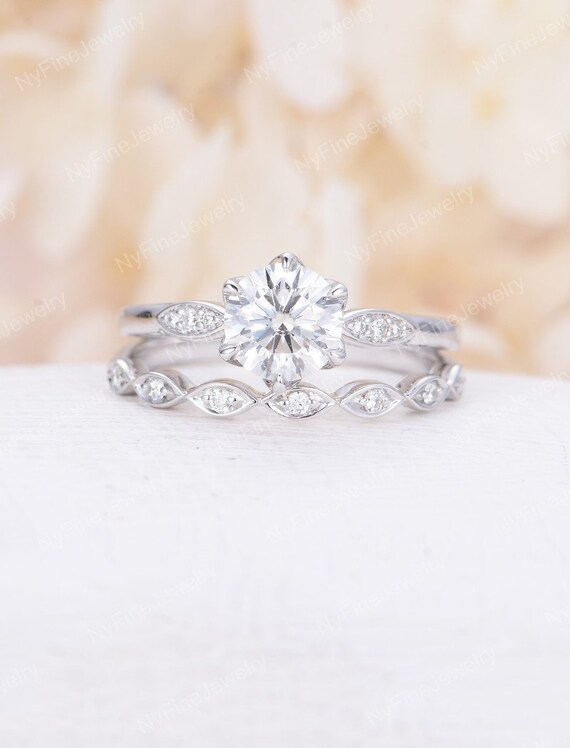 Moissanite Verlobungsring Vintage Verlobungsring Set Diamant Etsy