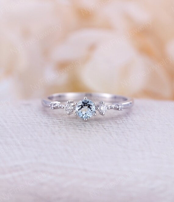 Aquamarine Engagement Ring Vintage Engagement Ring White Gold Etsy