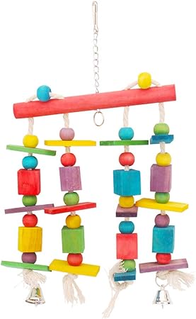 Amazon Com Traumdeutung Wood Blocks Big Bird Chewing Swing Toy With Bells Pet Supplies