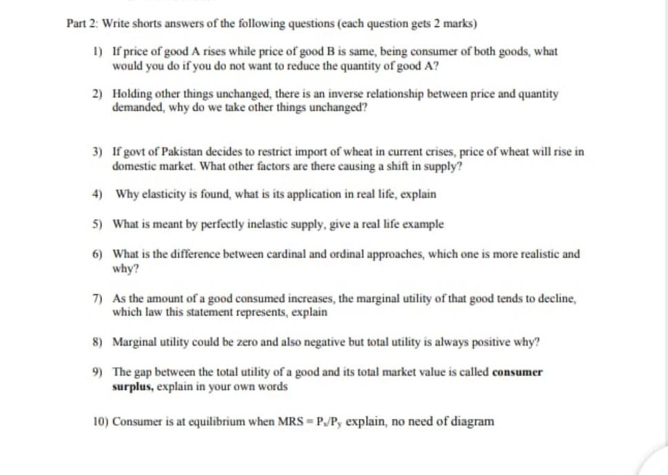 Solved Part 2 Write Shorts Answers Of The Following Ques Chegg Com