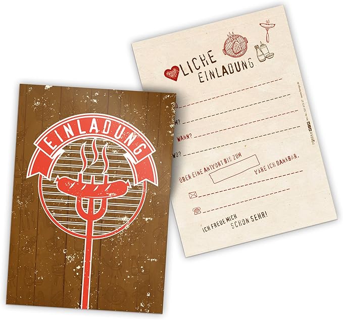 Itenga 12 X Einladungskarten q Rustikal Rot Braun Grillparty Geburtstag Vintage Holz Din A6 Hoch Amazon De Spielzeug