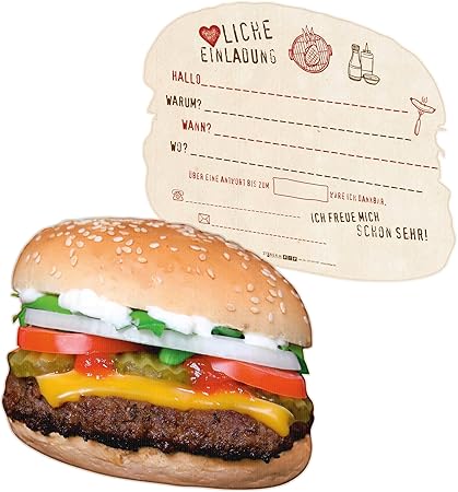 Itenga 12x Verruckte Einladungskarten Zur Grillparty q In Form Eines Burges Fur Echte Fleisch Und Burgerfans Amazon De Spielzeug