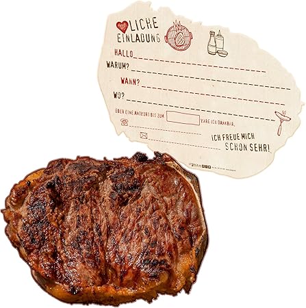 Itenga 12x Verruckte Einladungskarten Zur Grillparty q In Form Eines Grillsteaks Fur Echte Fleischfans Amazon De Spielzeug