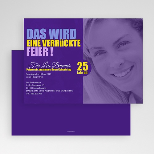 Verruckte einladungskarten. Keine langweiligen Einladungskarten mehr, mit lustigen Bildern und den dazu passenden Texten laden Sie hier Ihre Gäste zum Geburtstag ein. Der nächste Spruch passt für Einladungskarten, die Sie an Arbeitskollegen richten Sie umschreiben Entspannung wie auch Frohsinn und, dass die Arbeit für diese Zeit beiseite geschoben wird Ausgelassenheit ist das Thema Außerdem verschaffen Sie dem Eingeladenen die Gelegenheit zum Feiern, welche sich im alltäglichen Leben sonst nicht bietet. Einladungskarten zum 70 Geburtstag gestalten Optimalprint do not visit 100% KundenzufriedenheitsGarantie 100% Qualitätsgarantie " " 9,2 / 10 ( Bewertungen) Anmelden Ihre Bestellungen.
