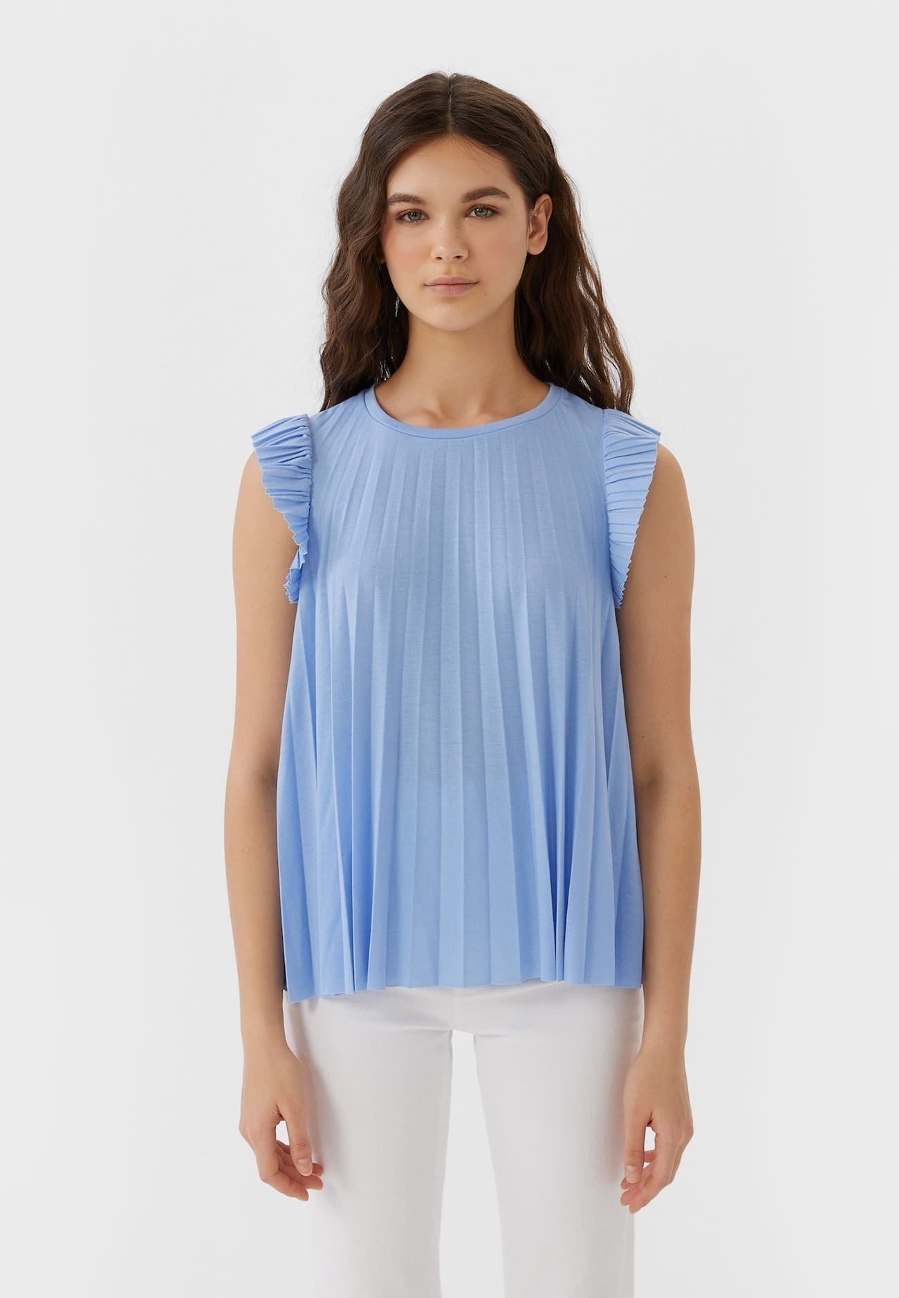 Sale Cotton Blouse With Volant Light Blue Of Set At Myclassico Premium Fashion Online Shop