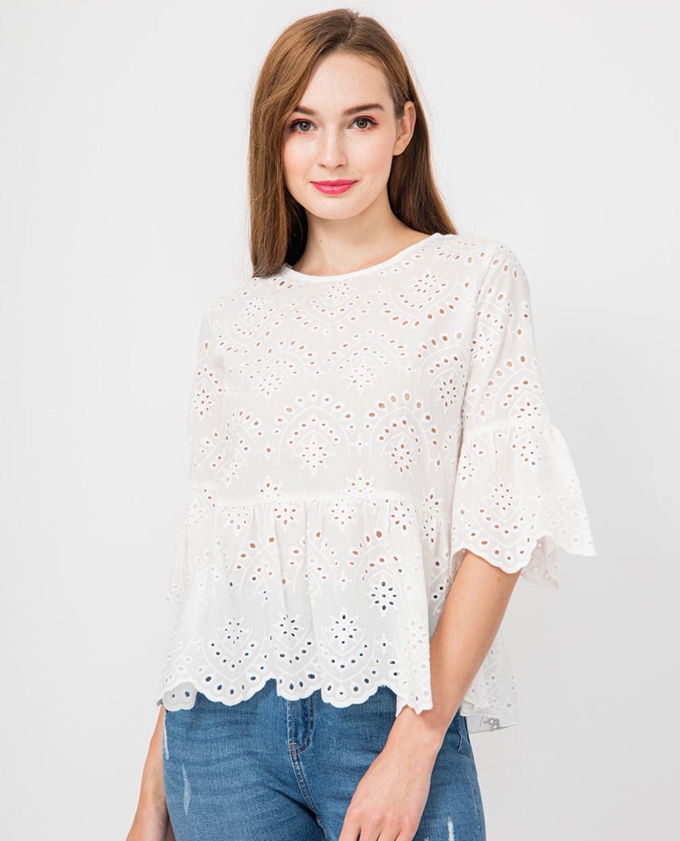 Bluse Mit Stickerei Und Volant From Zara On 21 Buttons