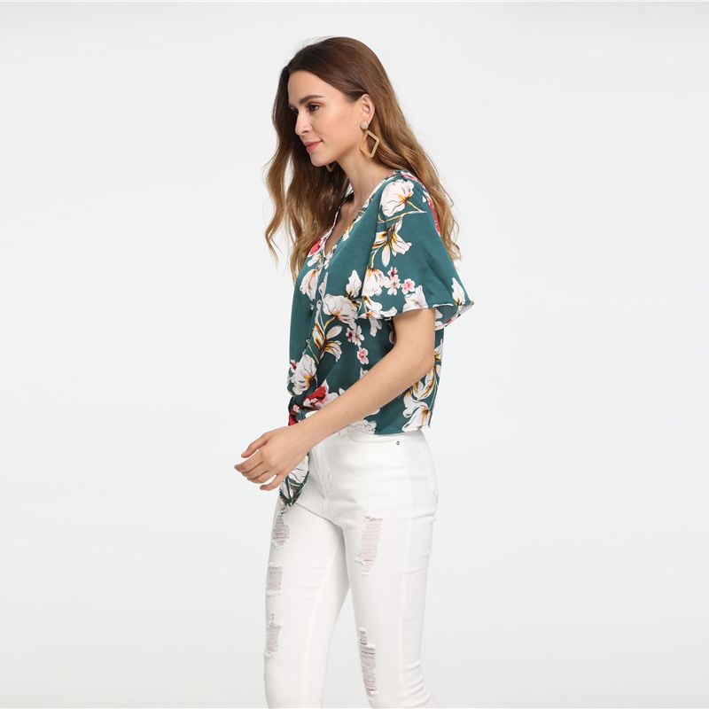 Grosshandel Shein Multicolor Urlaub Boho Bohemian Beach Button Up Volant Armel Knoten Floral V Ausschnitt Bluse Sommer Frauen Casual Shirt Top Von Z05a 18 75 Auf De Dhgate Com Dhgate