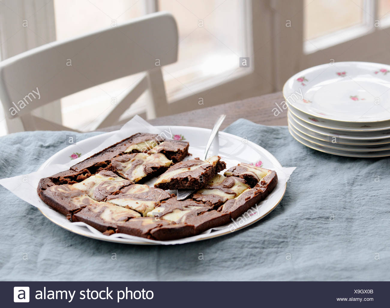 Hausgemachte Schokolade Brownies Mit Frischkase Fullung Auf Weisse Platte Perfekte Feuchte Textur Innerhalb Von Brownies Stockfotografie Alamy