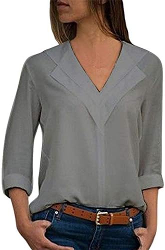 Setgvfg Weisse Bluse Langarm Freizeitbluse Mit Doppeltem V Ausschnitt Damen Oberteile Und Blusen Solides Buro Hemd Damen Blusenhemd Blusas Camisa Xl Grau Amazon De Bekleidung