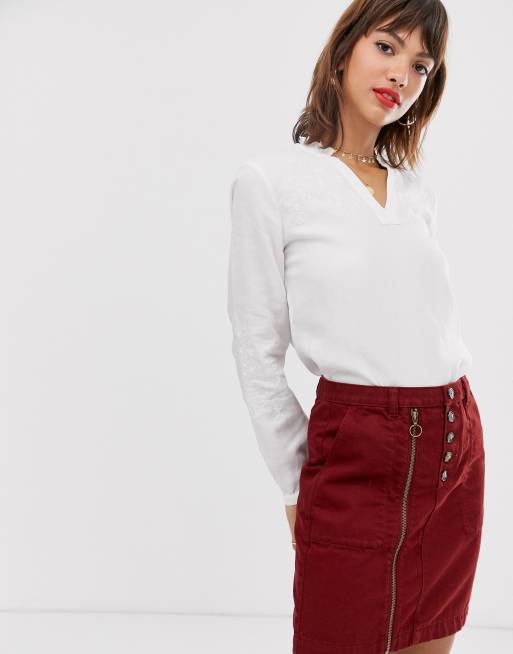 Esprit Weisse Bluse Mit V Ausschnitt Und Stickerei Iebem Morelos