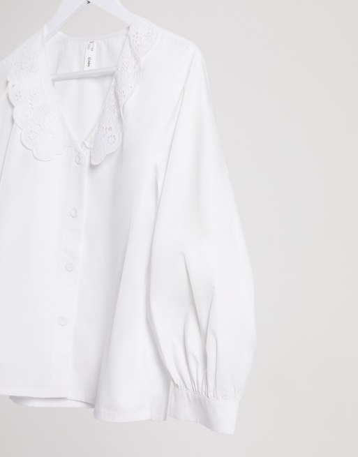Mango Weisse Bluse Mit V Ausschnitt Und Latzkragen Asos