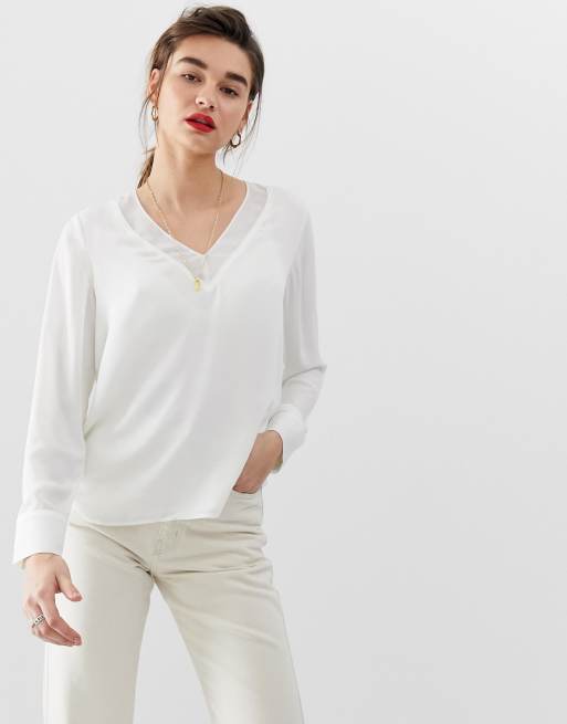 Warehouse Weisse Bluse Mit V Ausschnitt Asos