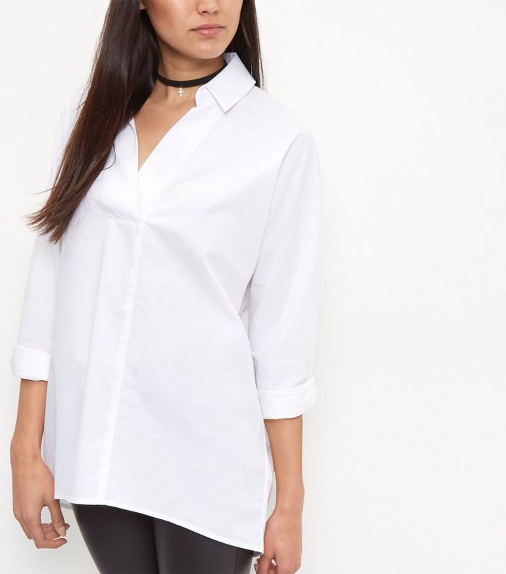Weisse Bluse Mit V Ausschnitt Und Kragen New Look